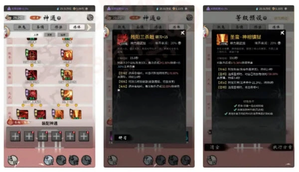 1)四系仙术:仙术之威,乃源于三清、浩然、大荒、金禅四派,收集残卷可获得大量属性加成