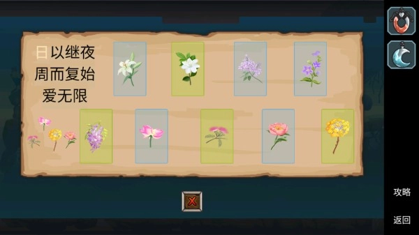 -白天对应调整藤蔓顺序,一一拉动获取花朵。