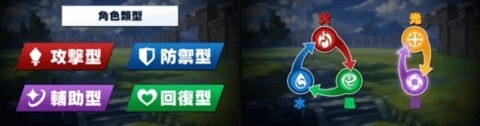 角色类型被分为四种,分别是攻击型、防御型、辅助型与回复型,每一种角色都是必不可少的。
