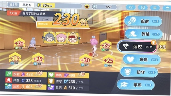 1、通过多样的活动增强队伍实力,玩家可以参加扭蛋、投篮小游戏等活动,提高队伍属性。