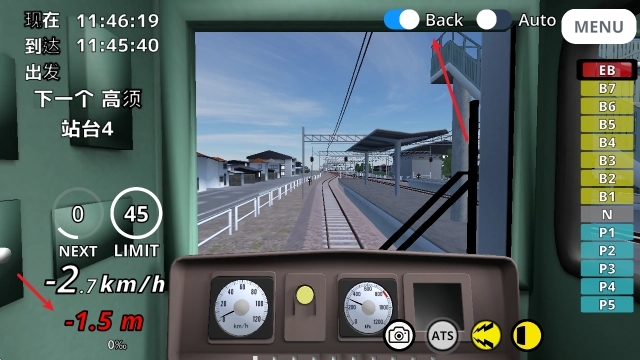 6、如果不小心停过站了,需要通过倒车来回到正确的位置。