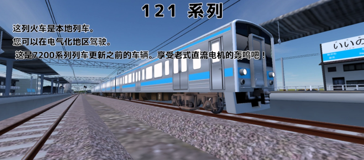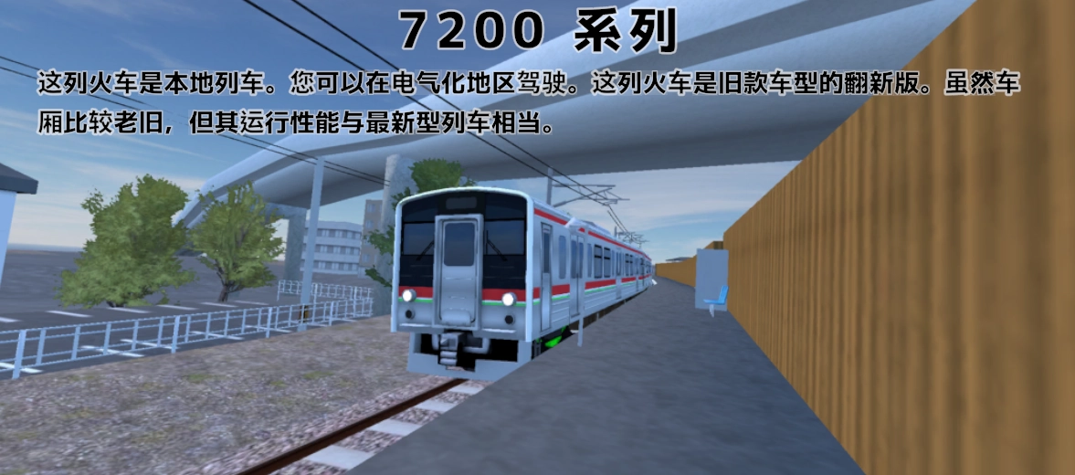 这列火车是本地列车。您可以在电气化地区驾驶。这是7200系列列车更新之前的车辆。享受老式直流电机的轰鸣吧!