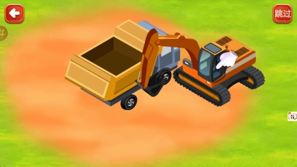 1、使用挖掘机把地面的泥土装载到货车里,点击货车就能完成卸土步骤。