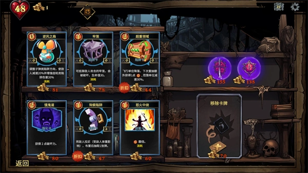 1、数百种不同的致命陷阱可以让你去选择使用,不同的技能卡牌可以构筑你的卡组来闯关。