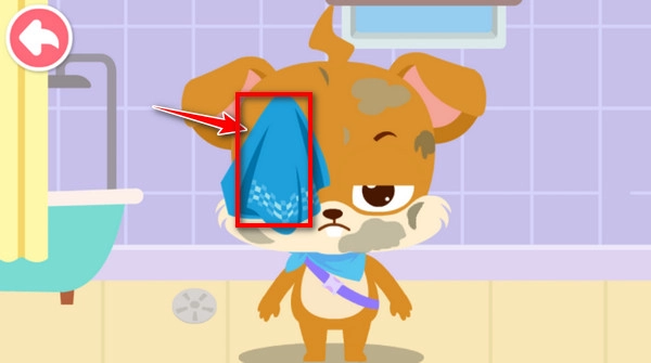 1、首先是给这种小老鼠擦泥巴,按住屏幕上的抹布,轻轻擦泥巴
