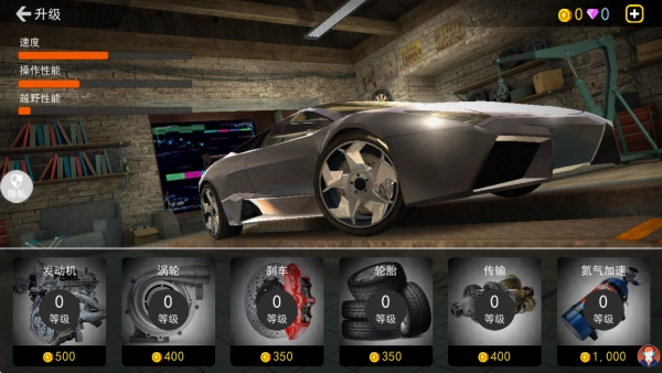 2.此外,在主界面的升级面板中,玩家可以消耗金币来升级汽车的各个部位提升属性能力。