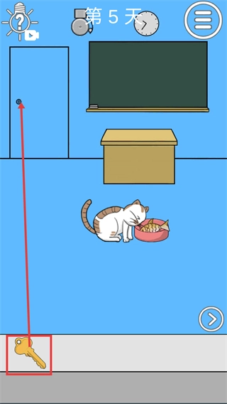 4、猫咪被吸引后出现【钥匙】,用钥匙打开门,即可达成【游戏成功】。