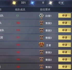 3、在右侧点击申请按钮,就能申请加入别人战队了,在下方也能搜索战队ID