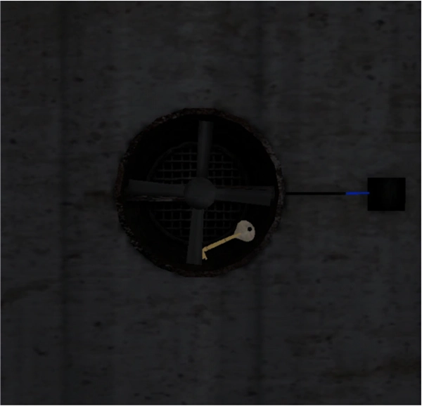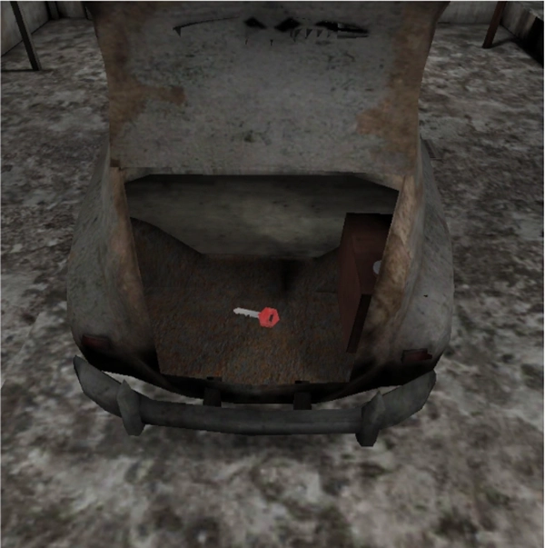 2、找打一辆车,收集到所有零件,然后用蓝色人的钥匙打开车库门,用车撞击三次即可逃离。