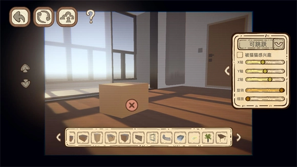 6、在主界面点击建造可以自己创建关卡来游玩。进入建造界面后下方是可以放置的物品,右侧的操作栏可以控制物品的操作与旋转。