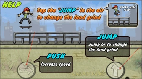 1、进入游戏后,展现在眼前的便是闯关界面。左侧的方向键能够操控小男孩的前进方向与移动速度,右侧的按键则可让男孩完成跳跃动作,而且跳跃过程中还会同步呈现滑板炫技的特效。