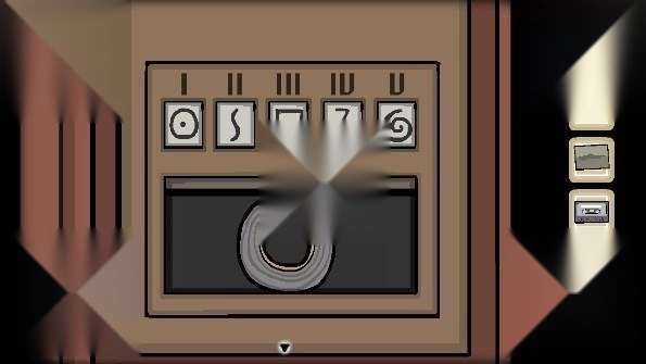 15、将胶片2放入投影机后获得提示「588」和五个符号对应的东西,将电视频道拨到588,根据画面中出现的顺序「乌鸦、男人、女人、药瓶、黑影」找到对应的符号