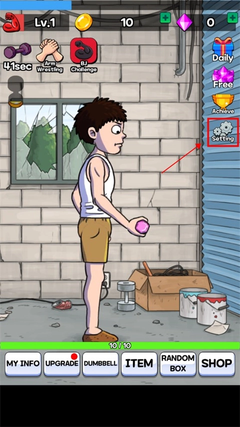 1、启动游戏后,找到并点击“setting”选项进入设置界面;