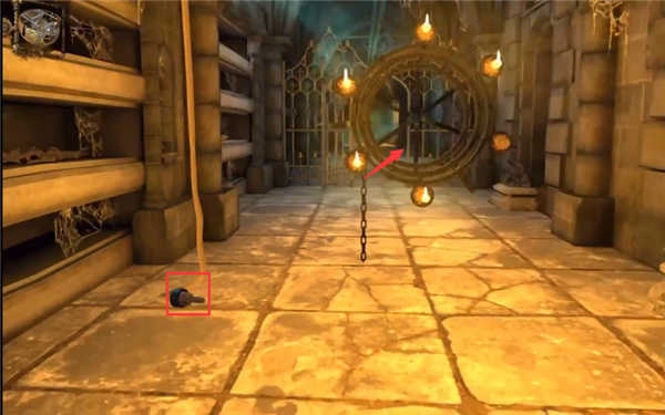 9. 将绳子拖至烛台位置并挂上,建立连接。