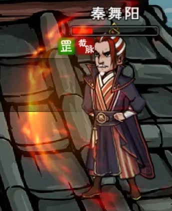 秦舞阳:目前最强的boss,1|101|1的站位,主角放中间最后的位置,陶放在中间第一个,只要能扛过25%血量时的技能就能打赢秦舞阳,吸蓝和打散聚气对秦舞阳无效,技能是血量触发不会受蓝的影响。 秦舞阳只会在血衣楼出现一次,此后只出现在通缉令中且不会再掉落残页。