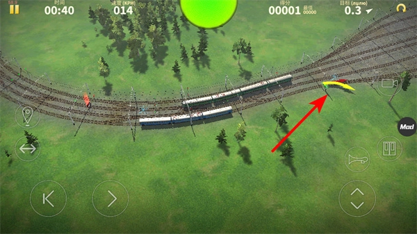 3、遇到轨道岔口时,需注意绿色箭头指示的轨道方向,行驶时提前规划路线,避免火车驶入错误轨道。
