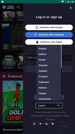 1、打开crazygames游戏入口,进入软件后登录页面会自动弹出。