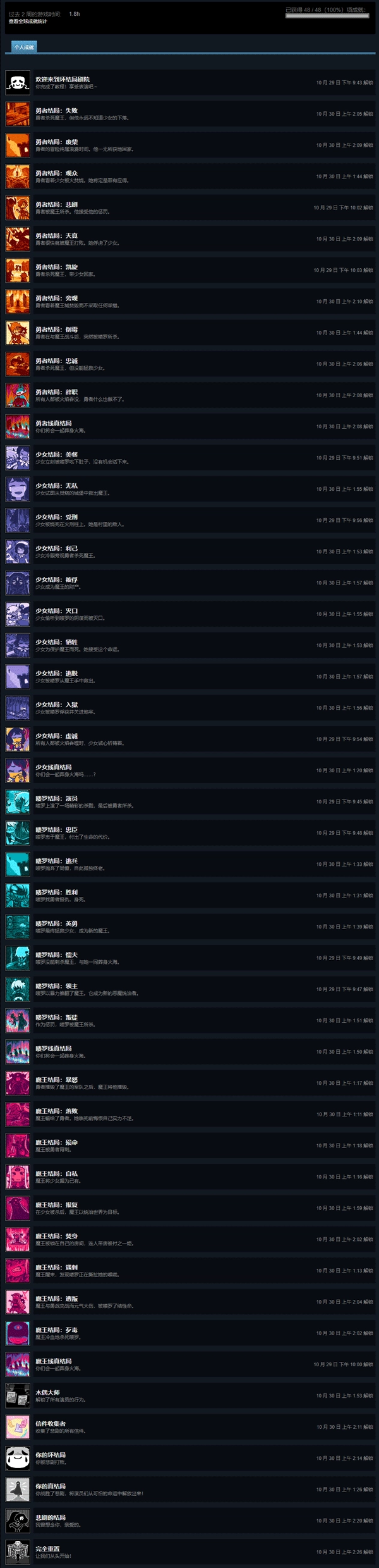 坏结局剧院全成就指南注意:如果你还从未开始游玩这款游戏,那请不要看这部分内容,成就的描述十分剧透,等你打到几个真结局后再来吧。
