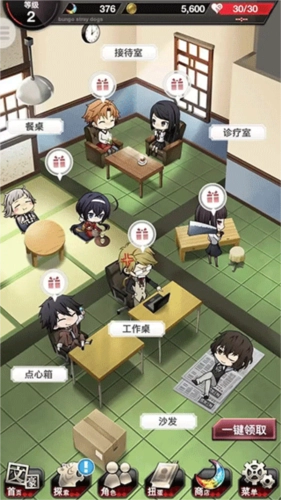 9、侦探社:在侦探社里每隔一段时间可以从对应角色处领取奖励,可用素材或异能石强化侦探社内的角色工作环境,以缩短等待时间及提高奖励等级。