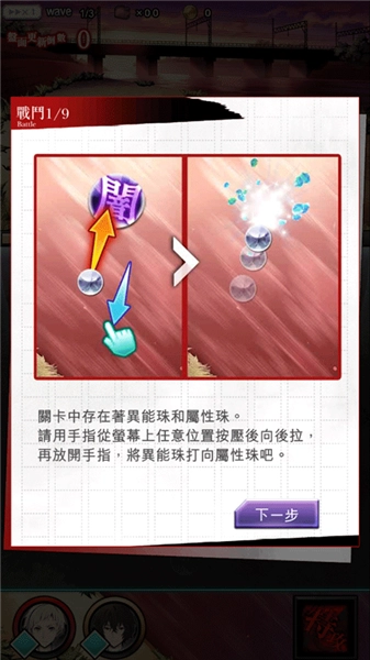 3、游戏的玩法非常简单,卡牌中存在着异能珠和属性珠,请用手指从屏幕上任意位置拉动,让异能珠去击打属性珠;