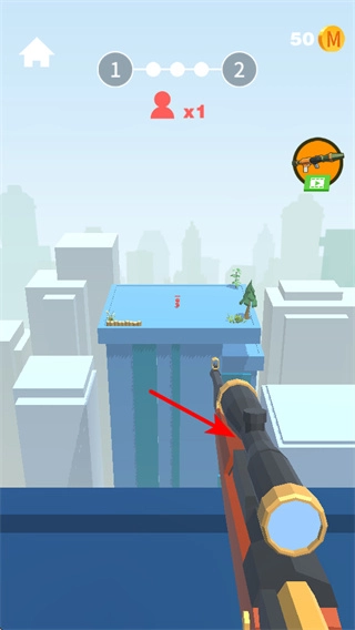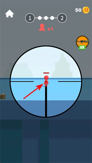 2、通过瞄准镜锁定红色小人目标,锁定后需精准射击,确保一击命中以完成击杀任务。