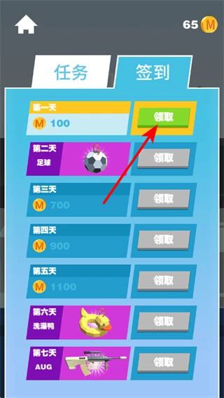 4、在签到界面点击领取可获取每日奖励,领取后积累资源用于提升武器和角色实力。