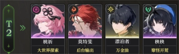 4、T2角色:炽霞、秋水、桃祈、莫特斐、秧秧、漂泊者。