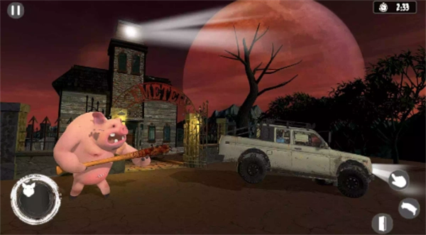1、采用动态镜头切换与第一人称视角,3D建模精细呈现猪奶奶的狰狞形态及血迹斑驳的场景细节。