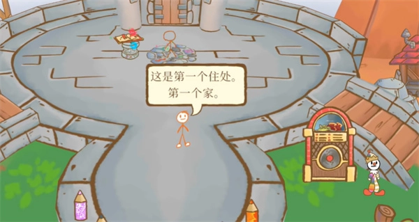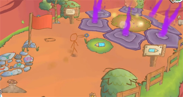 3、并且在过桥前,还能看到一些玩具和烹饪用具。能够以画一团火来帮助煮饭,这将解锁一个隐藏任务。