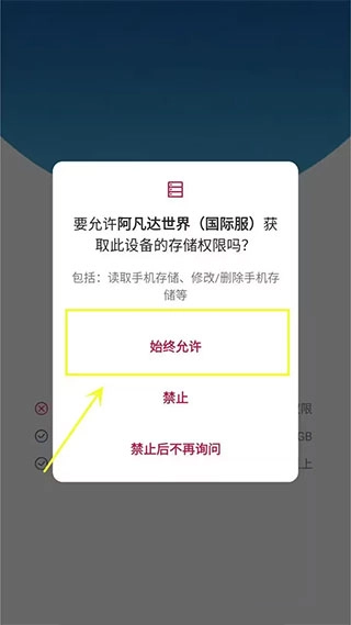 ①点开安装好的游戏就会出现安装器了,这里会提示“储存权限”,点击【始终允许】