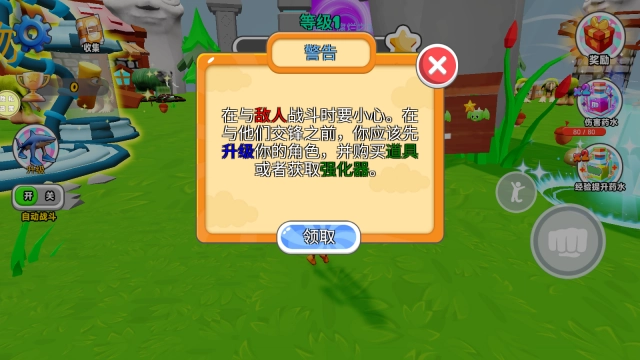 2、可以开启自动战斗,观看视频可以获得伤害药水以及经验提升药水。