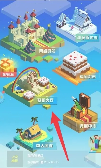 1、在手机和电脑上打开我的世界,点击联机大厅。