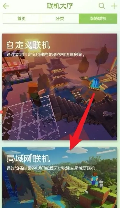 2、在联机大厅界面, 选择局域网联机。