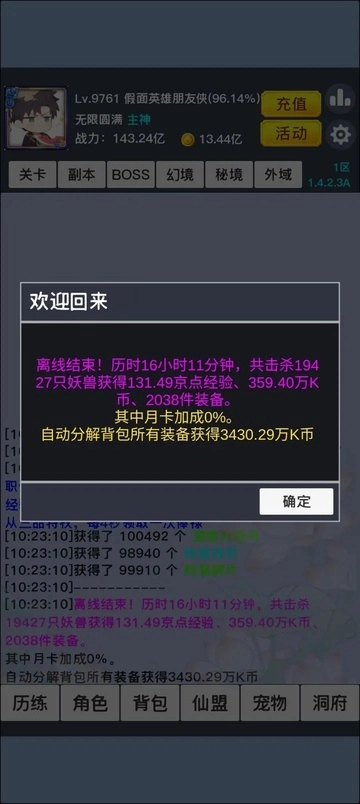 1.修复高战力玩家经验存在损耗的bug,该问题主要出现在离线经验和破灭玩法中。