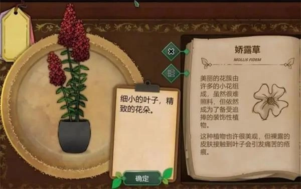 了解顾客需求:游戏开始经营植物店后 ,顾客会提出各种需求,有的能明确说出植物特征,有的只会描述面临的困扰。比如有顾客听到楼上传来窃窃私语声,想要听清低语,玩家需要从植物百科全书中查找能改善听力的植物 。