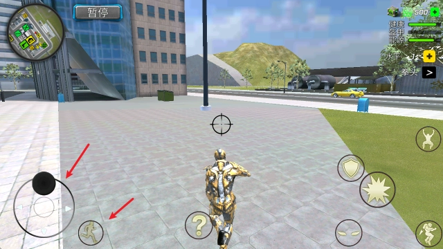 进入游戏后,借助左侧的摇杆来操控角色移动,同时也能利用其他按钮完成跑步、跳跃等动作。