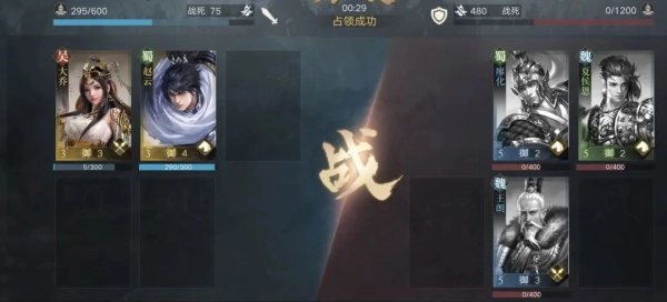 当然前期肯定不能只靠这两个武将来开荒,在标准四将满配的情况下,个人推荐的组合为:赵云,许诸,大乔,华佗(总计15御)