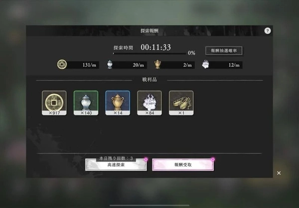 随着时间的推移,通过探索奖励可以获得金钱、培养材料和玩家经验值,所以请不要忘记领取。