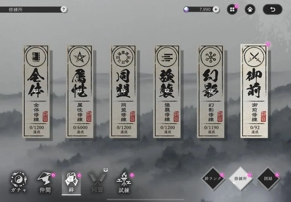 在修炼所中,可以使用在各个内容中获得的修复药来提升己方全体的状态。