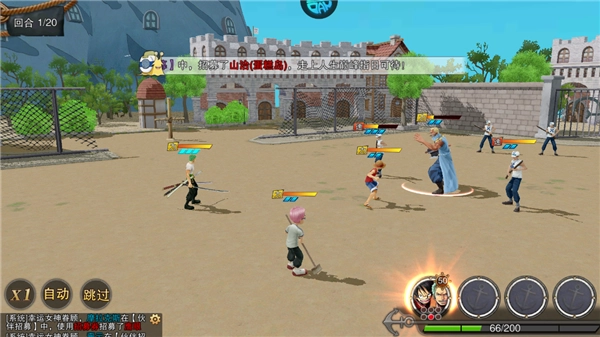 1.游戏采用回合制战斗玩法,招募角色来组建你的最强海贼团。
