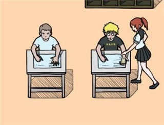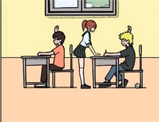 在前面的同学丢纸条到后面同学的一瞬间点击纸条,打落纸条完成闯关。
