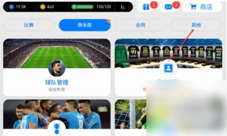 在游戏里,玩家若想更换球队,第一步得点击右上角的【其他】按钮。