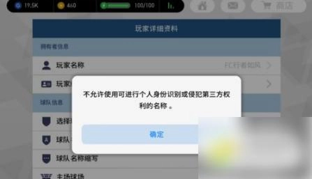 进入到【玩家详细资料】页面之后游戏会先弹出下图所示的对话框,上面显示玩家哪些名称是不可以使用的。