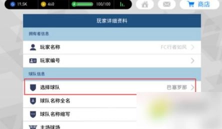 之后点击【玩家详细资料】页面中的【选择球队】按键。