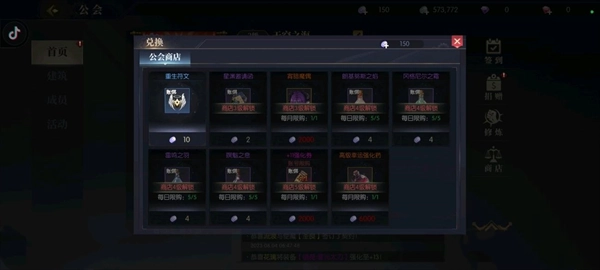5、公会商店,由会长升级,等级越高,可以购买更珍惜的道具,每日白嫖一个体力药水,每月白嫖一个橙色使魔(需要商店等级达到3级),强化药水不限购不限次,按需购买,仅公会商店产出