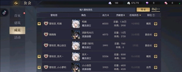 7、公会成员有自己专属的冒险团,可以选择当前账号下的其他角色加入,共同享受公会的所有加成