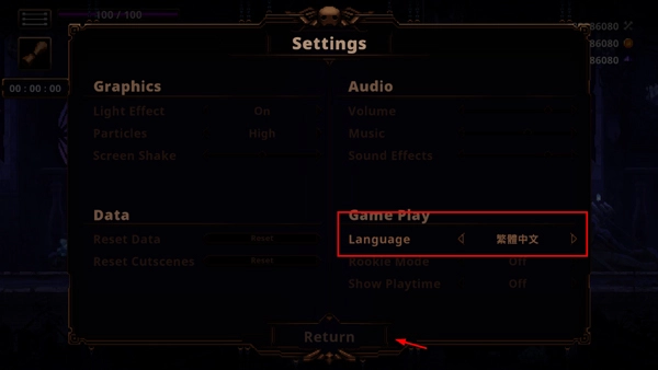 3、接着找到Language语言,选择语言为繁体中文,然后点击Return确认。