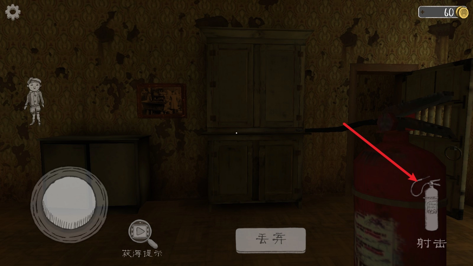 5、在找寻线索的同时,你需要躲避修女的追杀,可以找一些武器来防御,例如这里的灭火器。