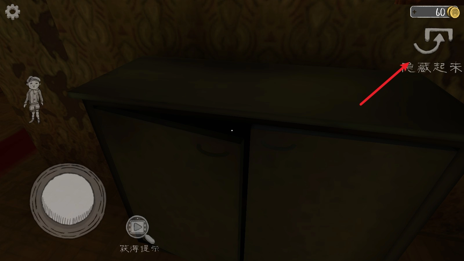 6、靠近可以躲避的物品时,右上角就会出现相应的按钮,点击即可将自己隐藏起来。