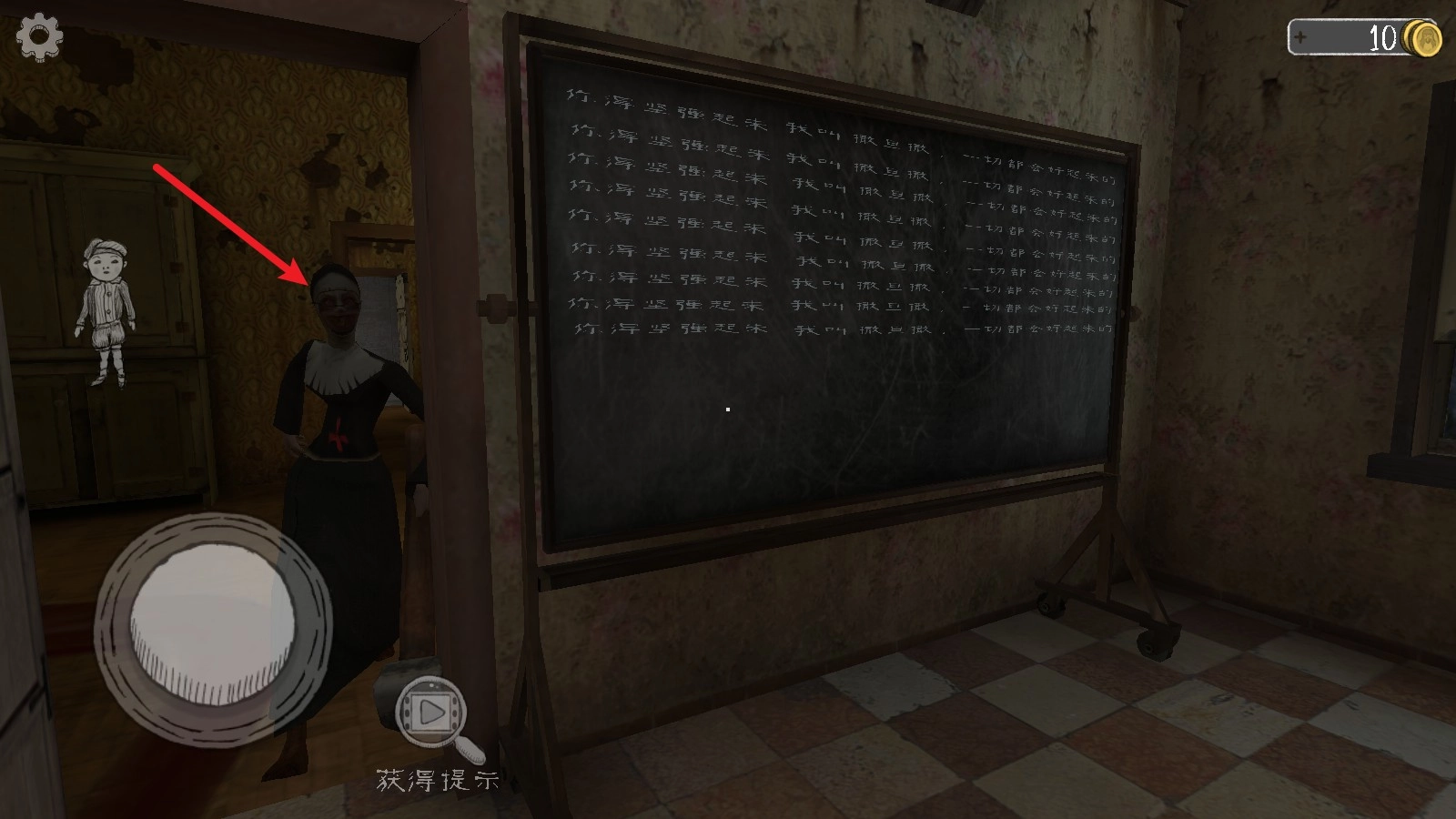 2、利用场景里的杂物制造声响,吸引修女注意力,趁机探索她看守的区域